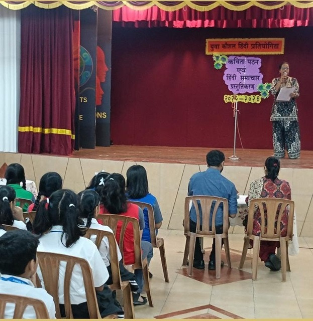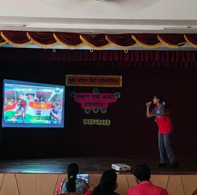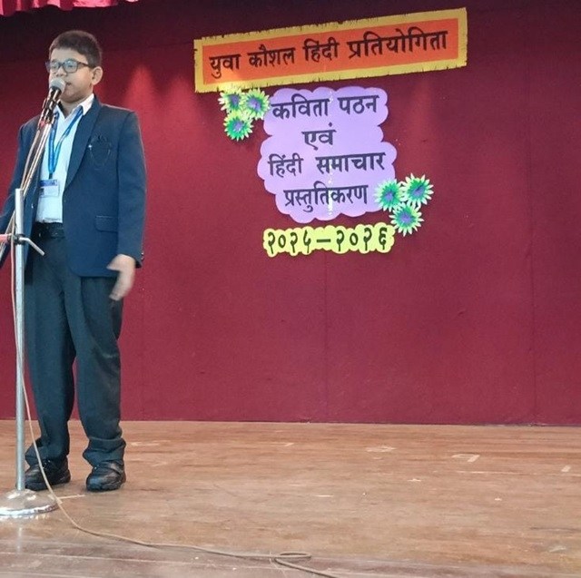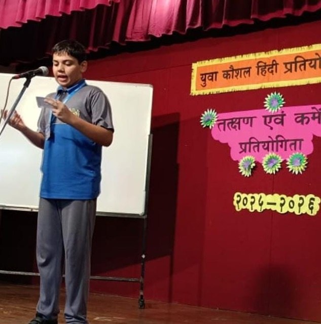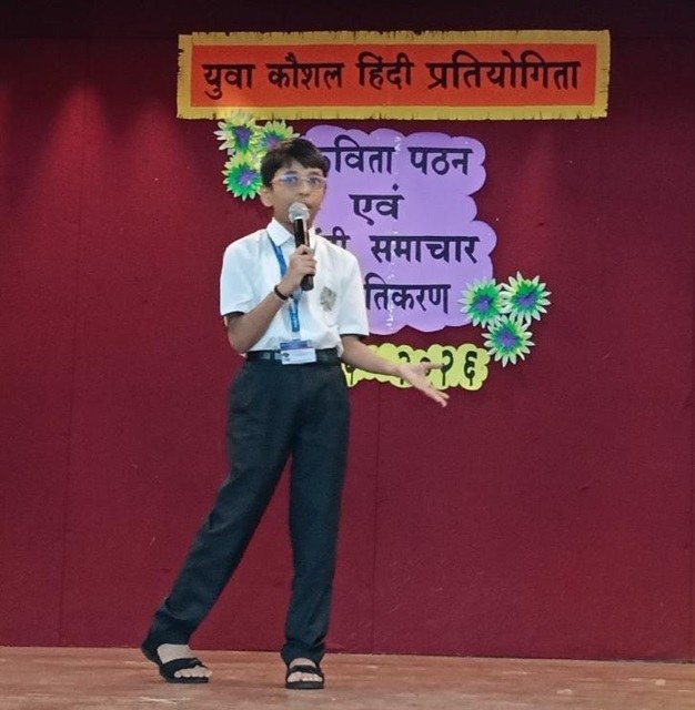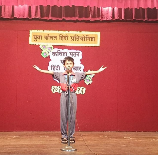 ‘Yuva Kaushal’ ,a competition in Hindi showcased students’ talents in various events. Primary grade students recited poems about emotions and relationships, demonstrating their understanding of complex themes. Their performances were heartfelt and innocent, bringing the audience to their feet.
